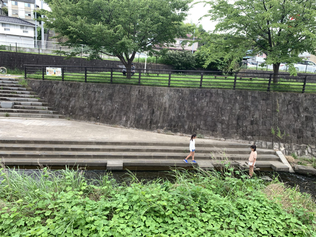 途中の川では子供達が水遊び