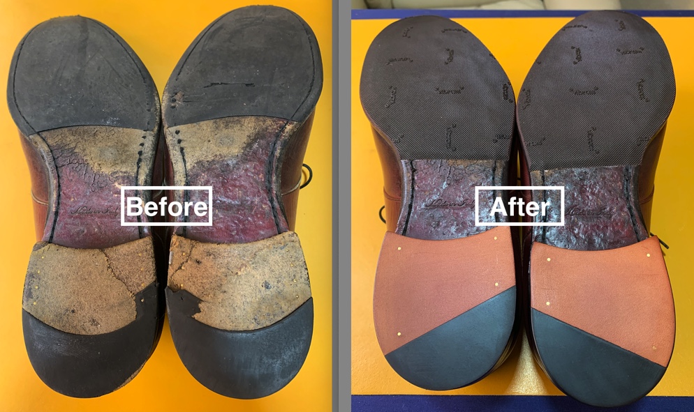底はカカトを張替え、ハーフラバーを張りました。