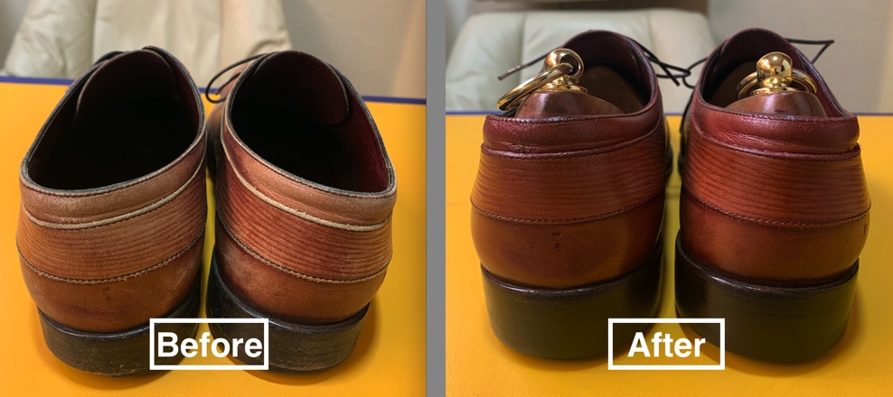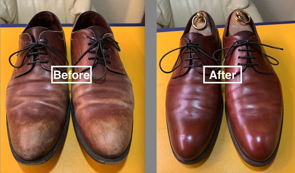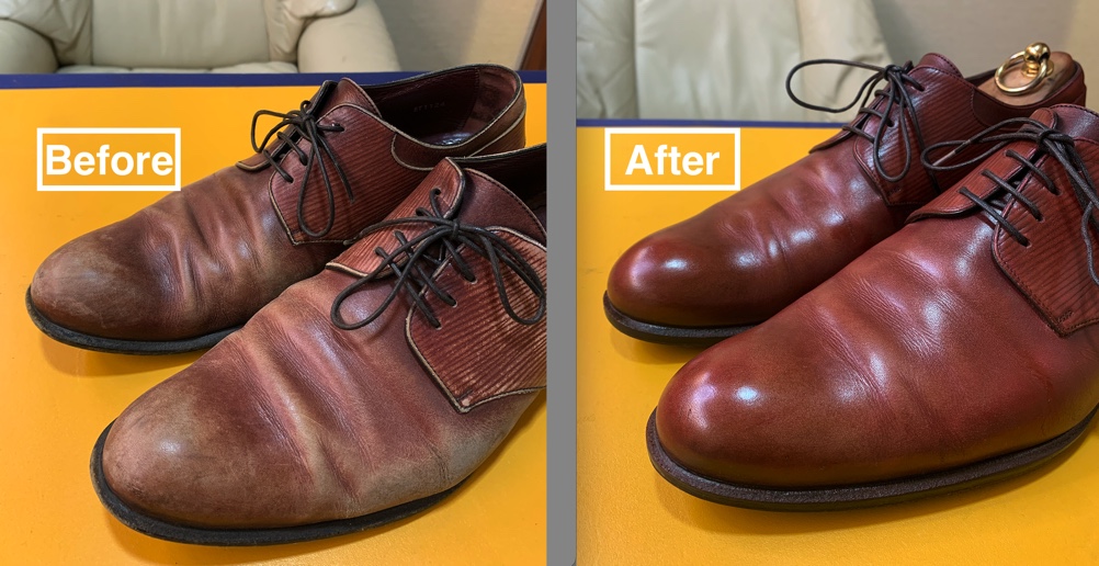 このヴィトンの革靴も、傷や全体的に色が抜け、とても履ける状態ではありませんでした。