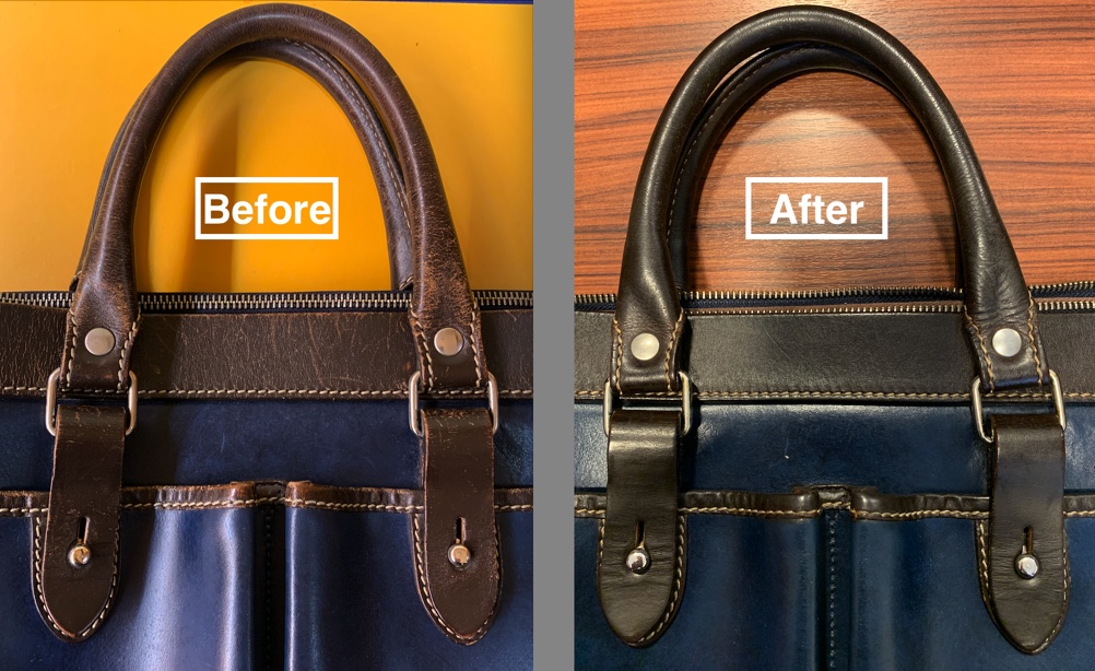 本革部分を色補修しナイロン生地部を艶出ししました。