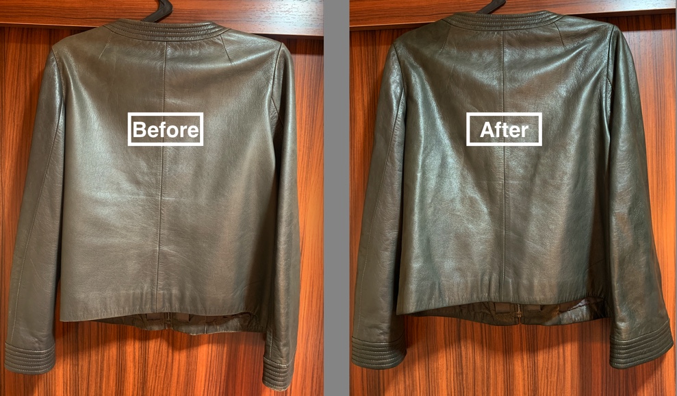 お預かりしたジャケットのビフォーアフターの比較をご覧ください。