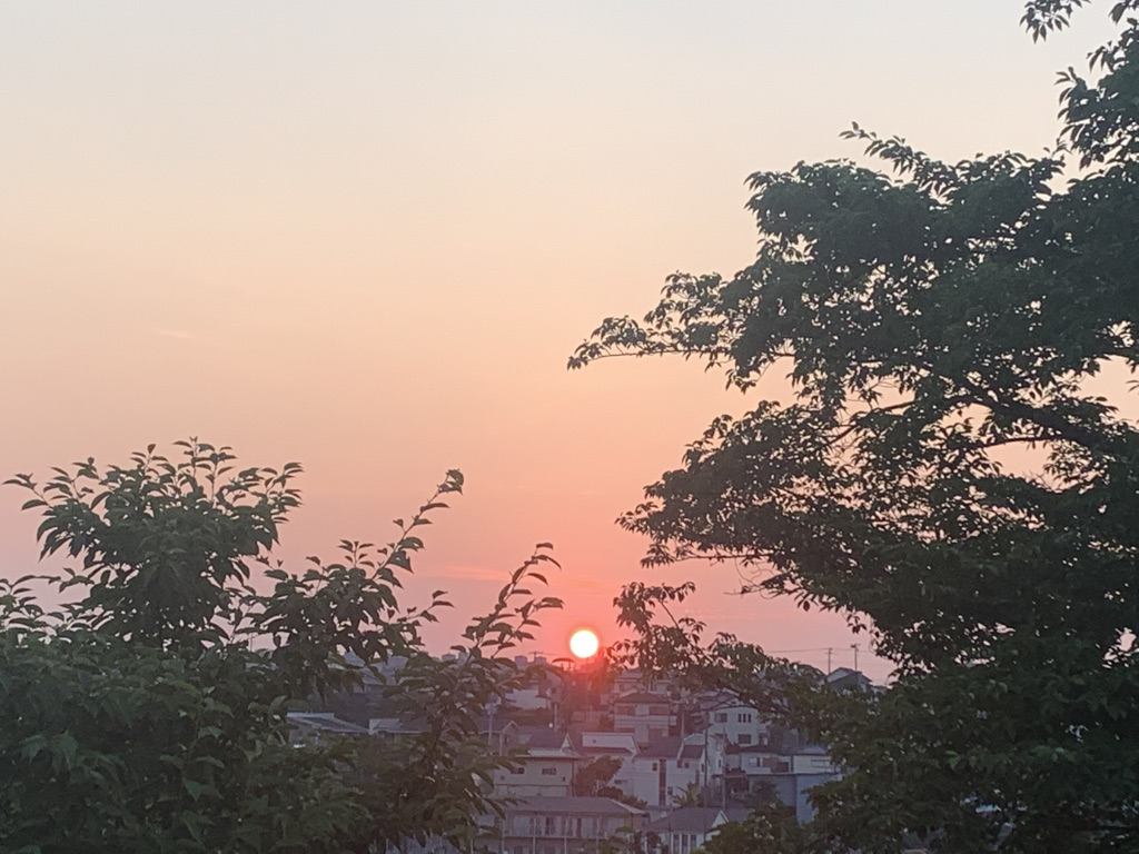 日の出の太陽が卵の黄身のように見えた