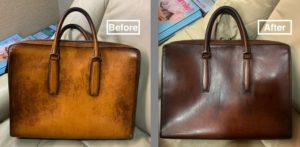 靴磨き 革靴 バッグ 修理 横浜元町 ヌメ革ビジネスバッグの再生